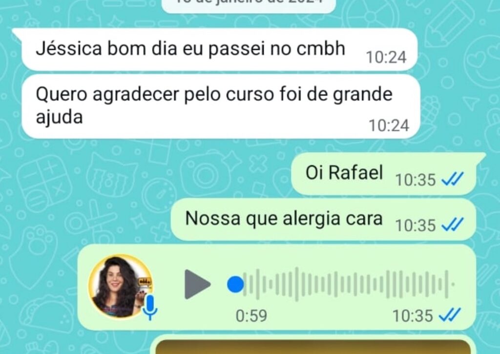 Ao longo do tempo, testemunhei a aprovação de diversos alunos sem a utilização de cursinhos, e muitos que optaram por essa via expressaram o arrependimento, admitindo que, se pudessem voltar atrás, teriam escolhido meu curso devido à sua abordagem mais ágil, direta e econômica. Se estivesse no papel de aluna, diante de um curso como o meu, dispensaria a ideia de cursinho. No entanto, compreendo que algumas pessoas necessitam da disciplina e da rotina imposta pelos cursinhos.